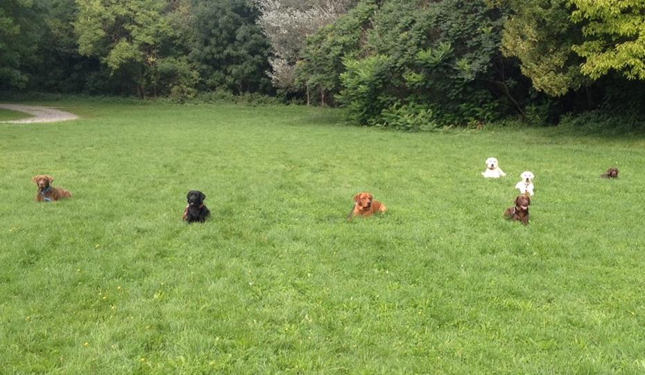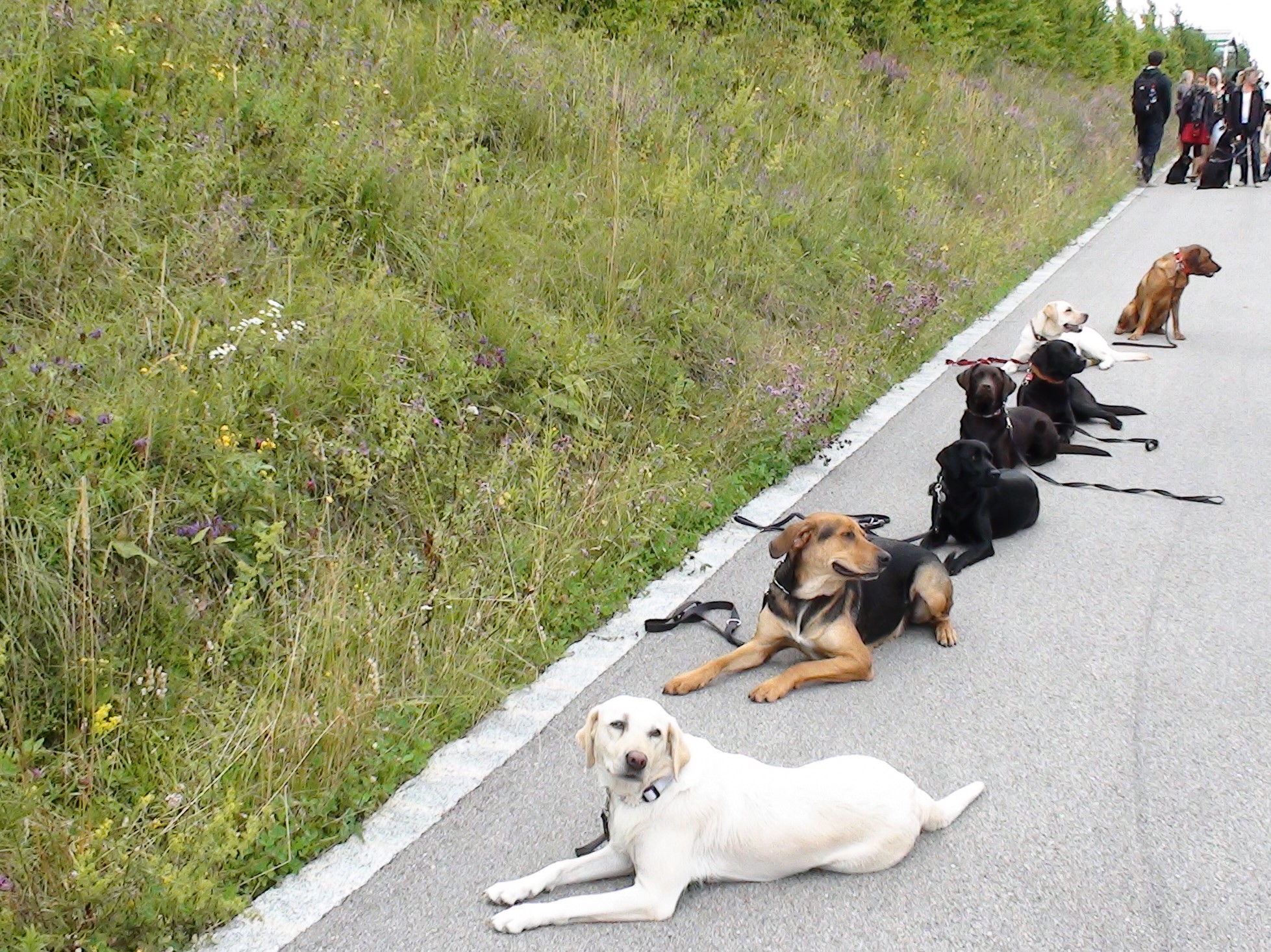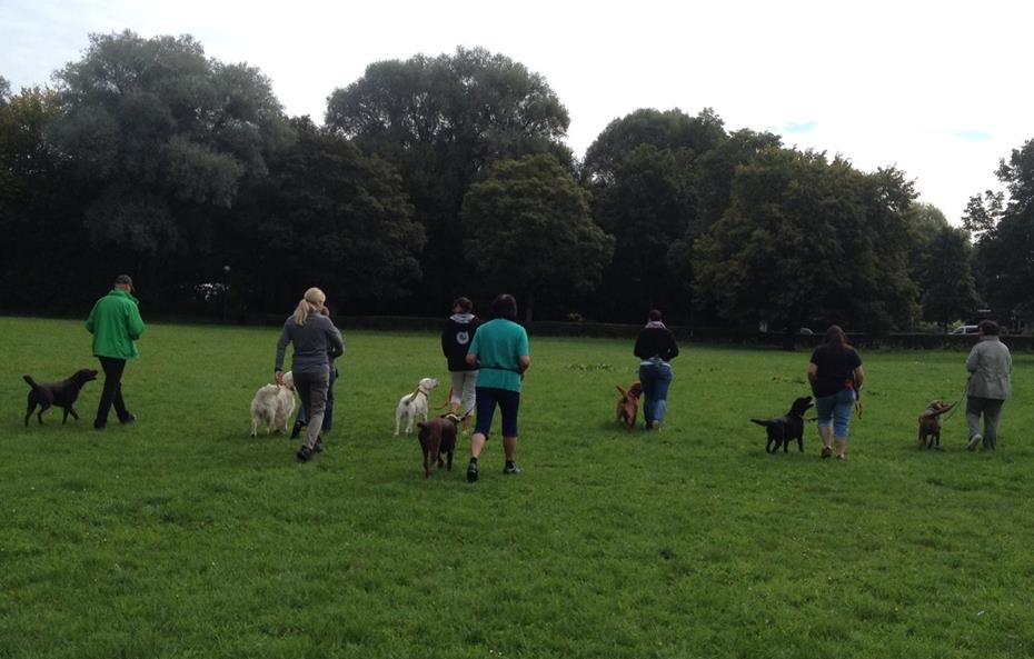 Im Gruppentraining lernen die Hunde in kleinen Gruppen, max. 10 Hunde verschiedene Gehorsamsübungen unter Ablenkung verschiedener Reize, wie Artgenossen, Jogger, Radfahrer, etc. auszuführen. Diese Training findet an verschiedenen Orten statt, damit die Hunde lernen, den Gehorsam überall auszuführen.