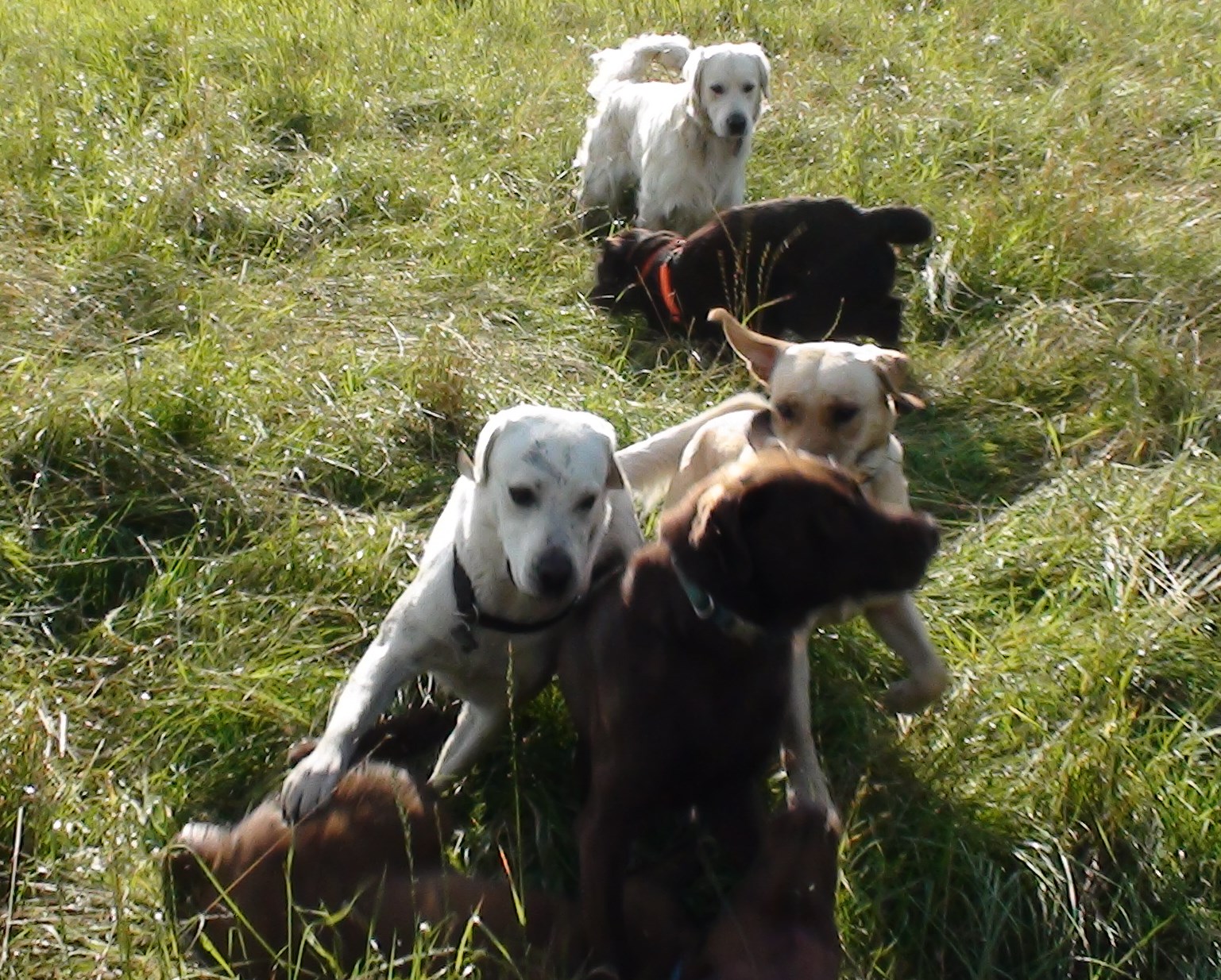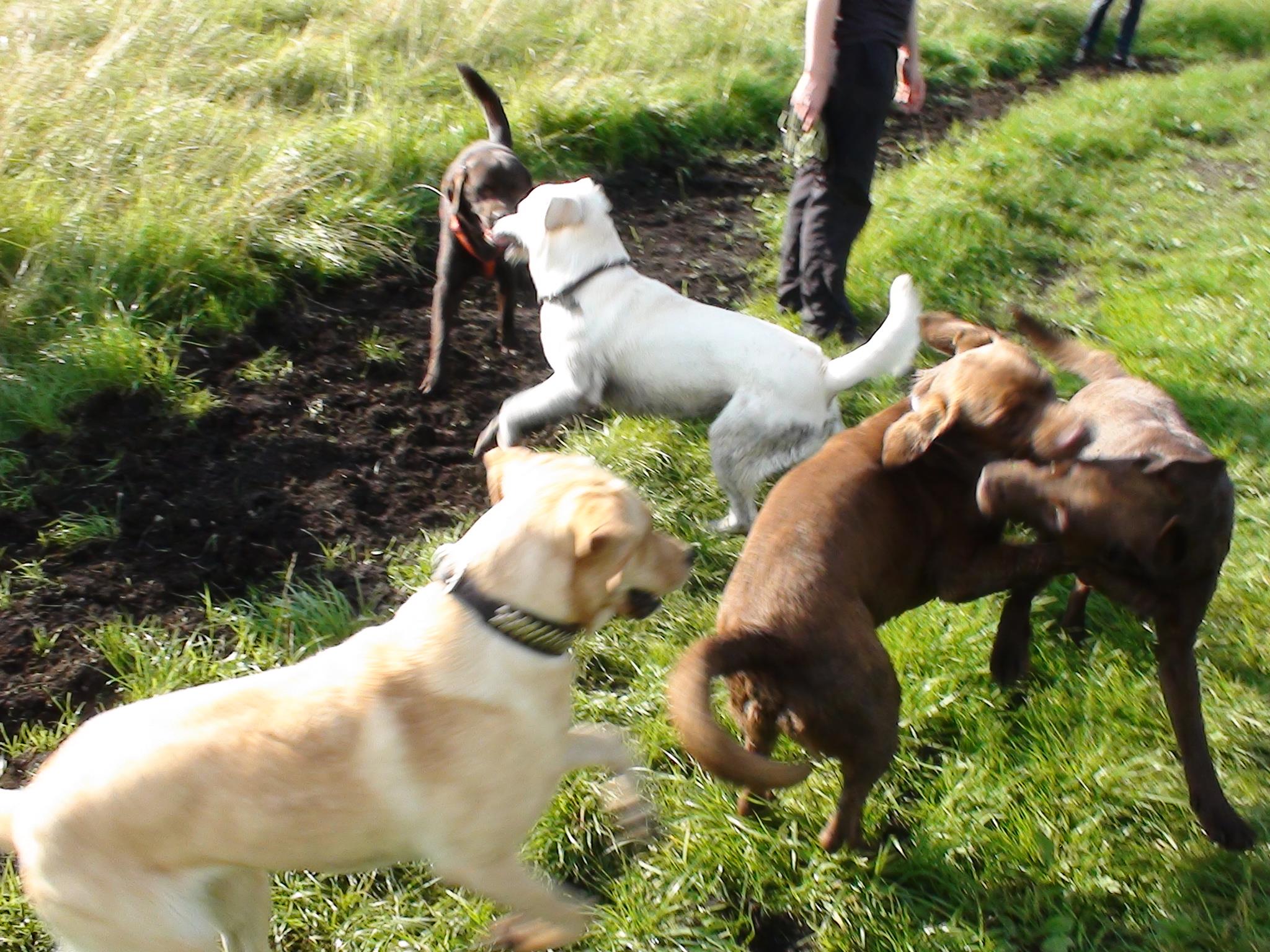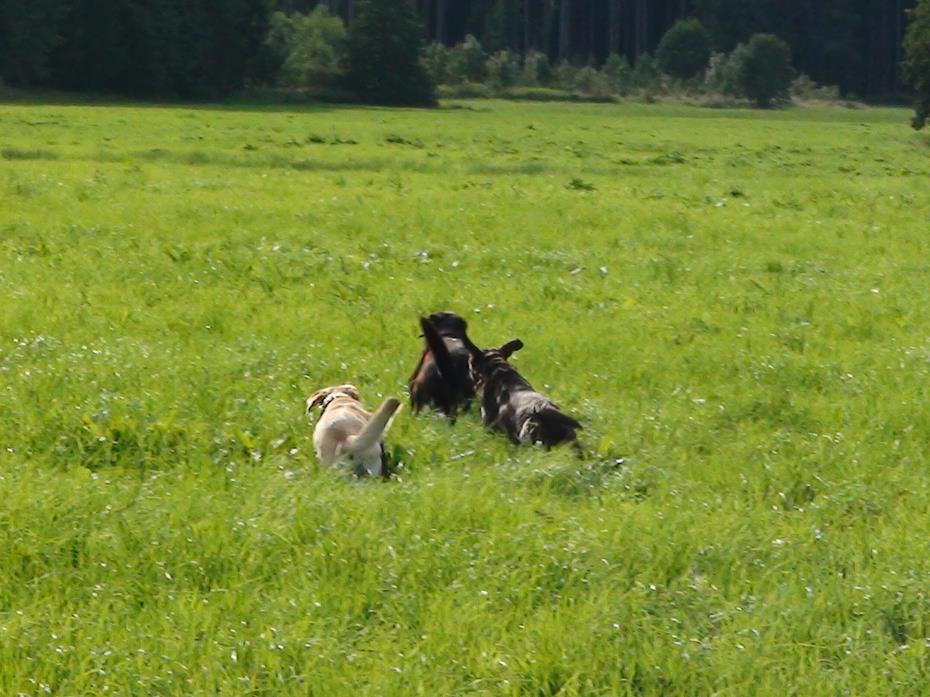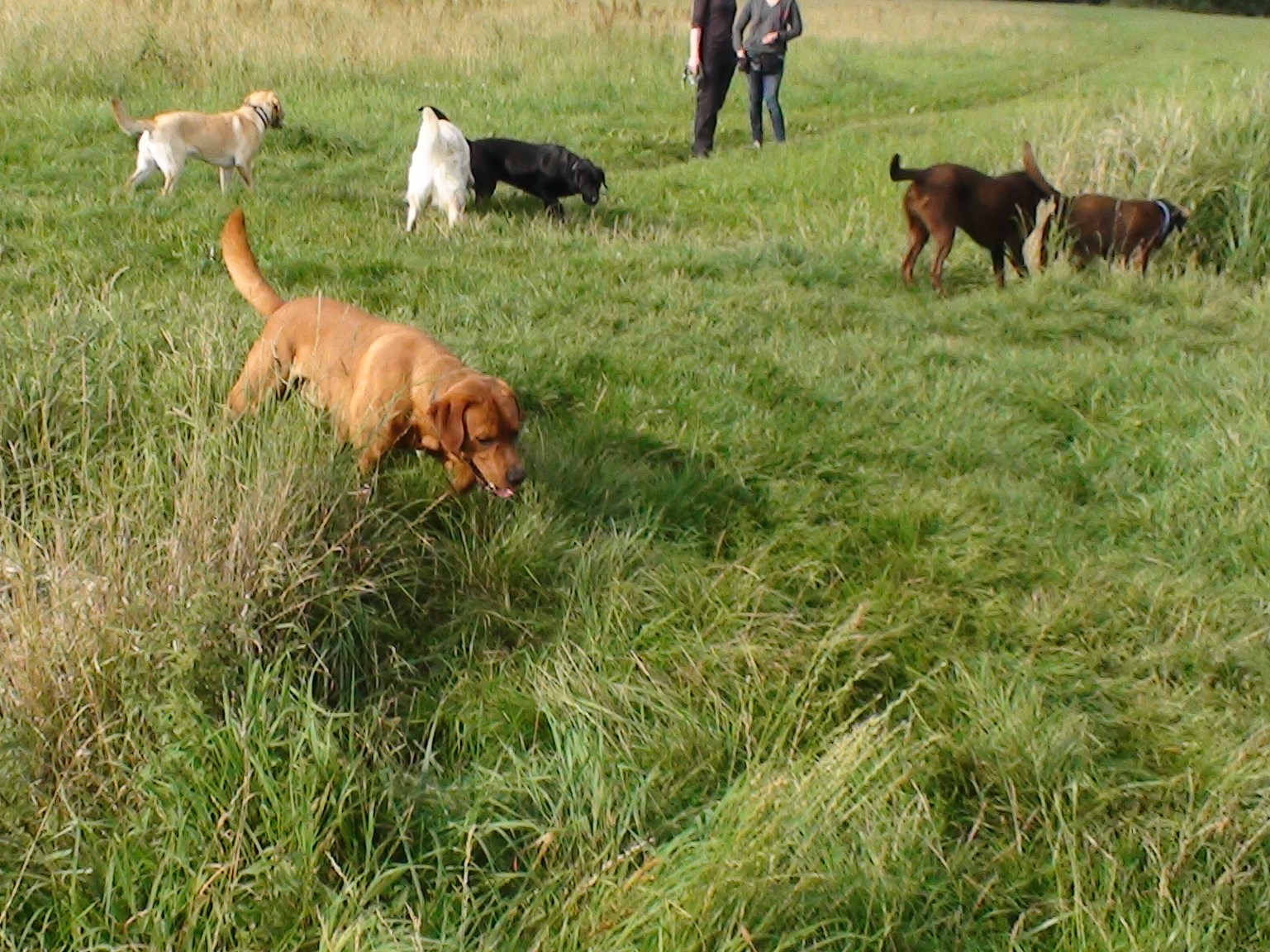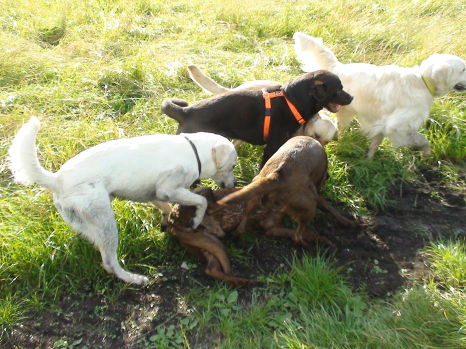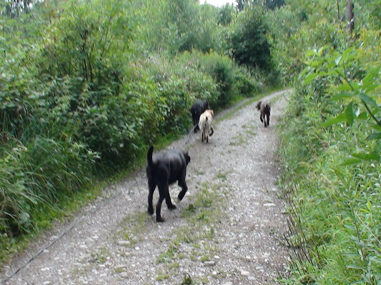 Dieser gemeinsame Spaziergang wird 1 x pro Woche angeboten, damit die Hunde die Möglichkeit haben, ausgelassen miteinander zu kommunizieren und zu spielen.