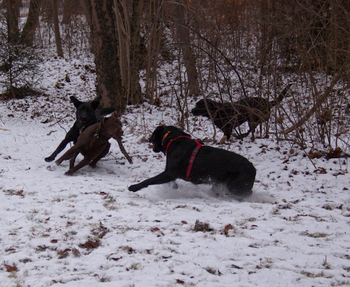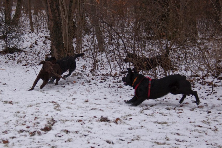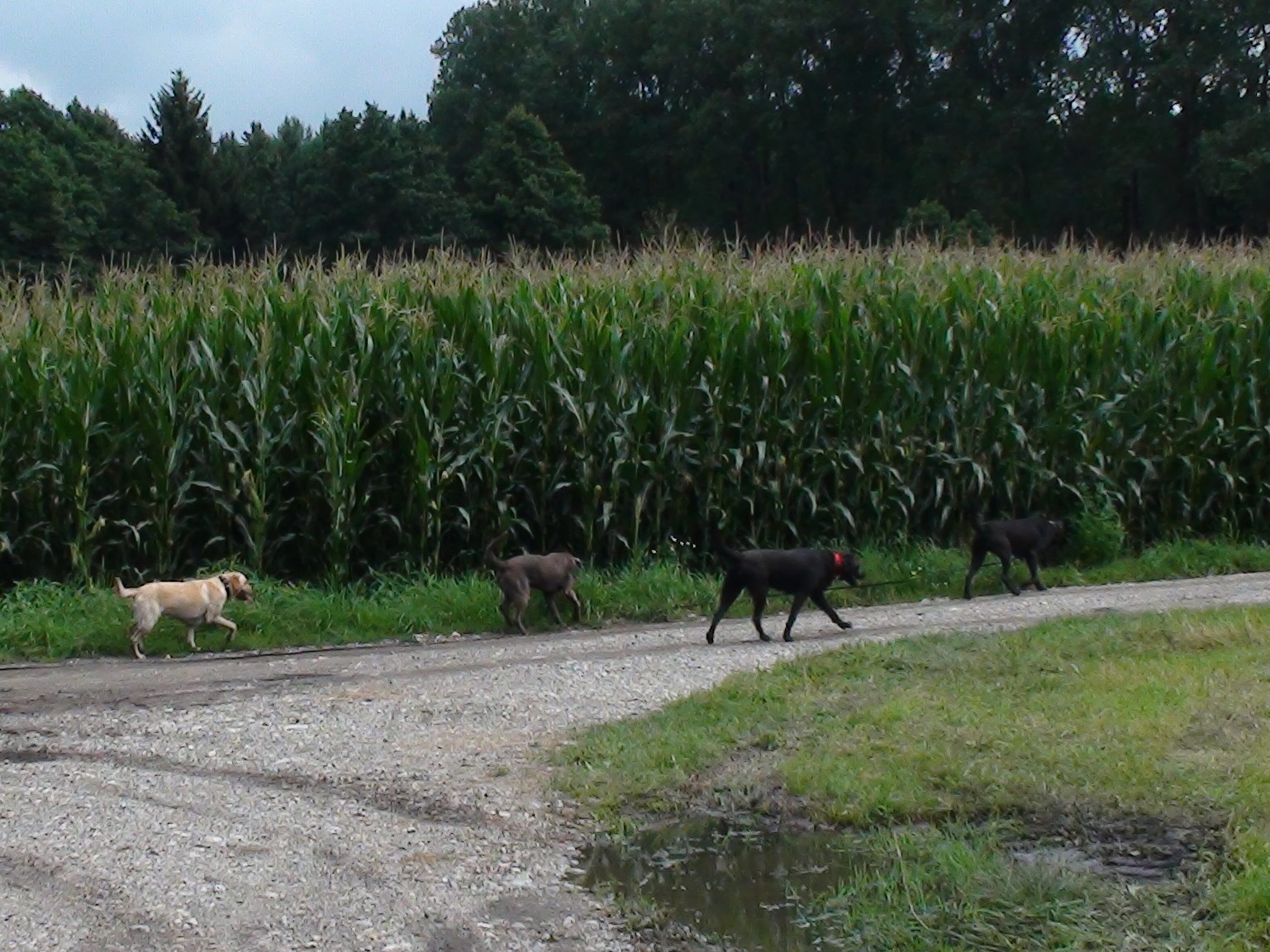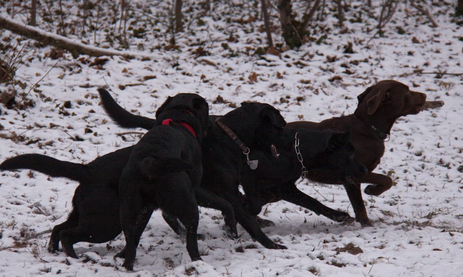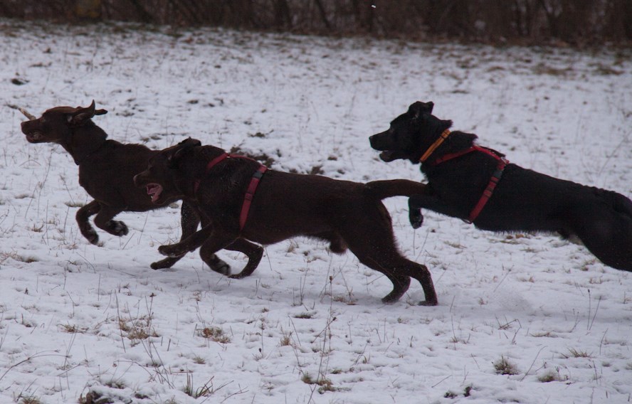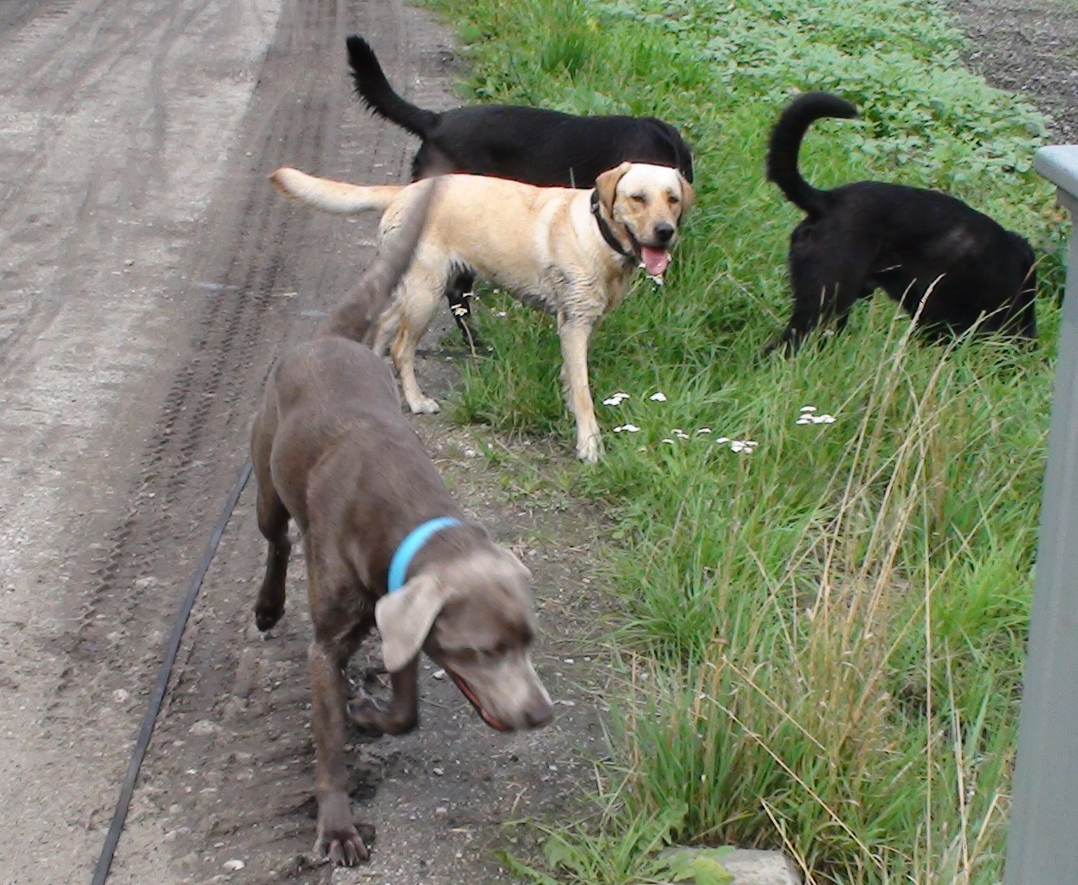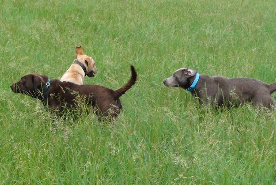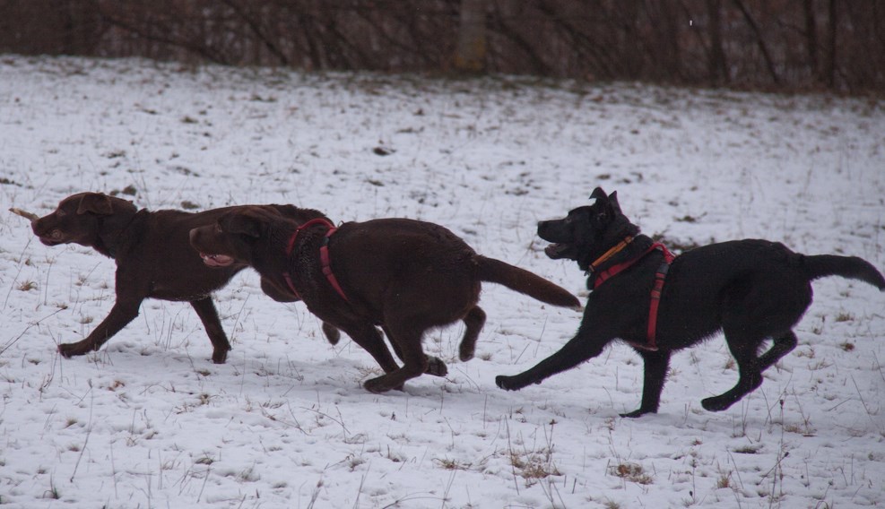 Dieser gemeinsame Spaziergang wird 1 x pro Woche angeboten, damit die Hunde die Möglichkeit haben, ausgelassen miteinander zu kommunizieren und zu spielen.