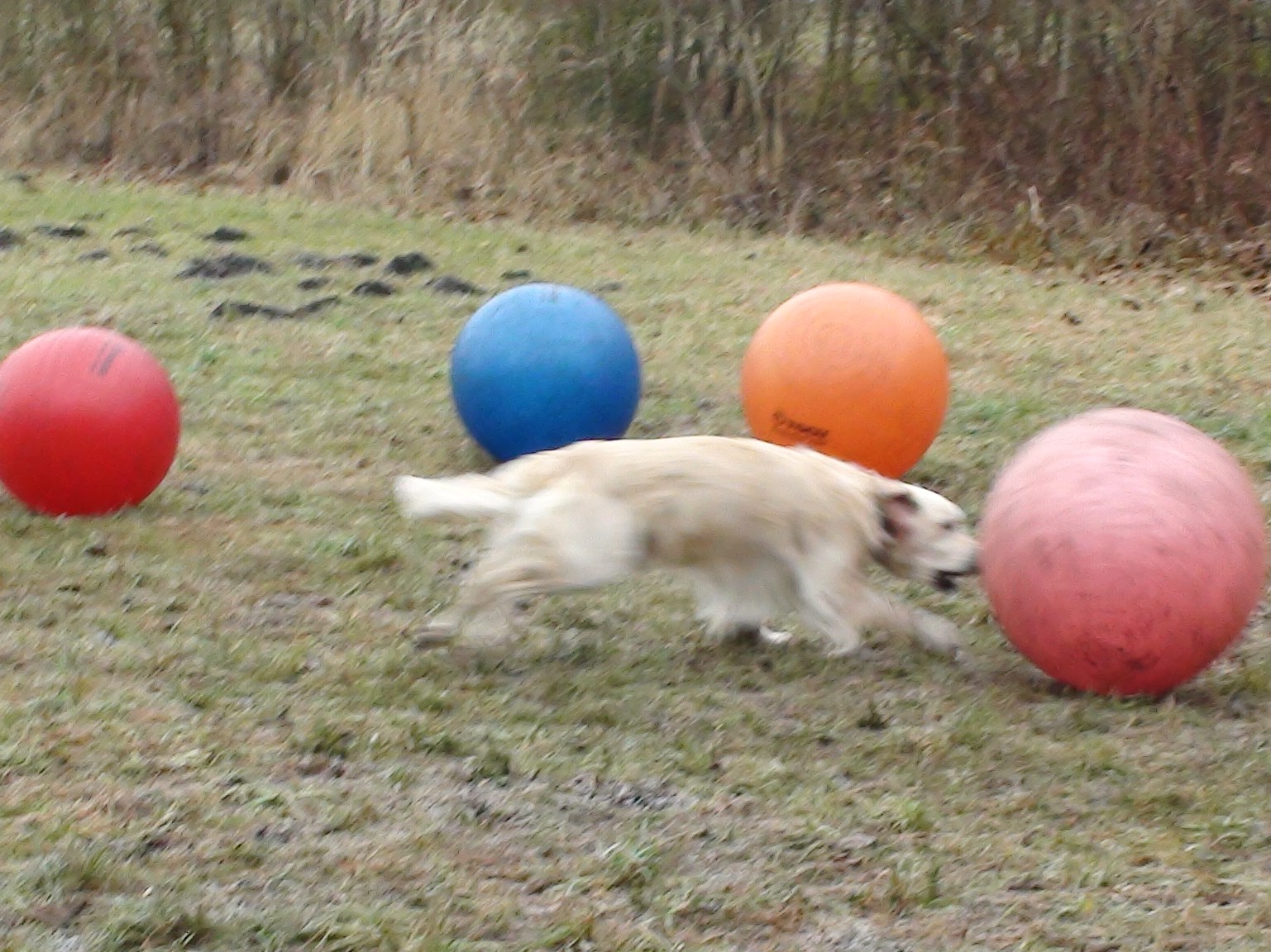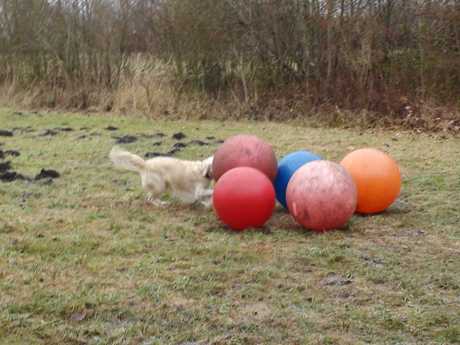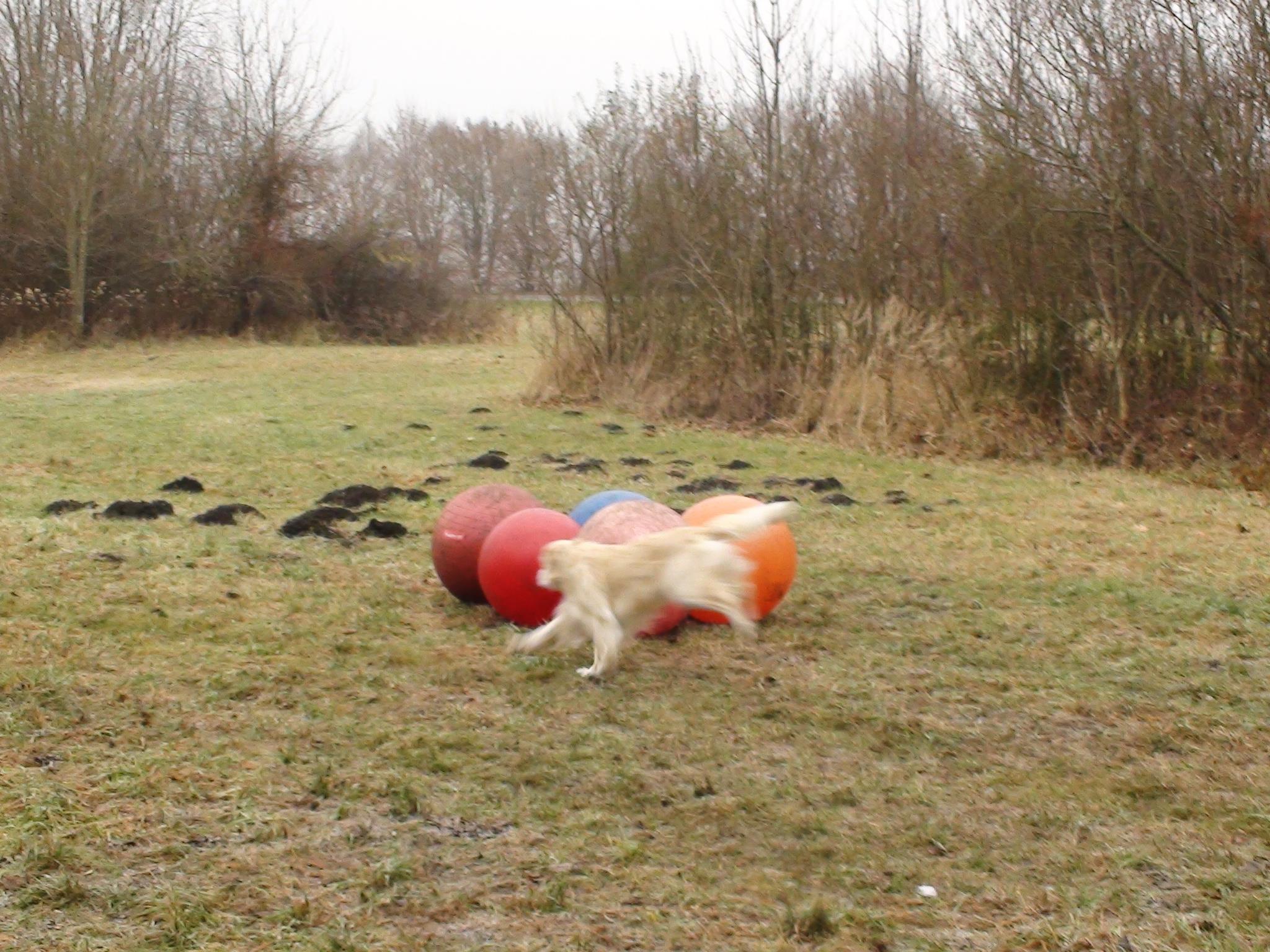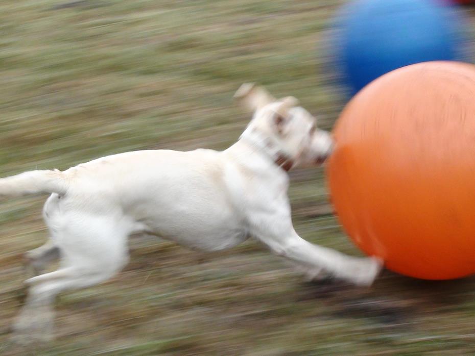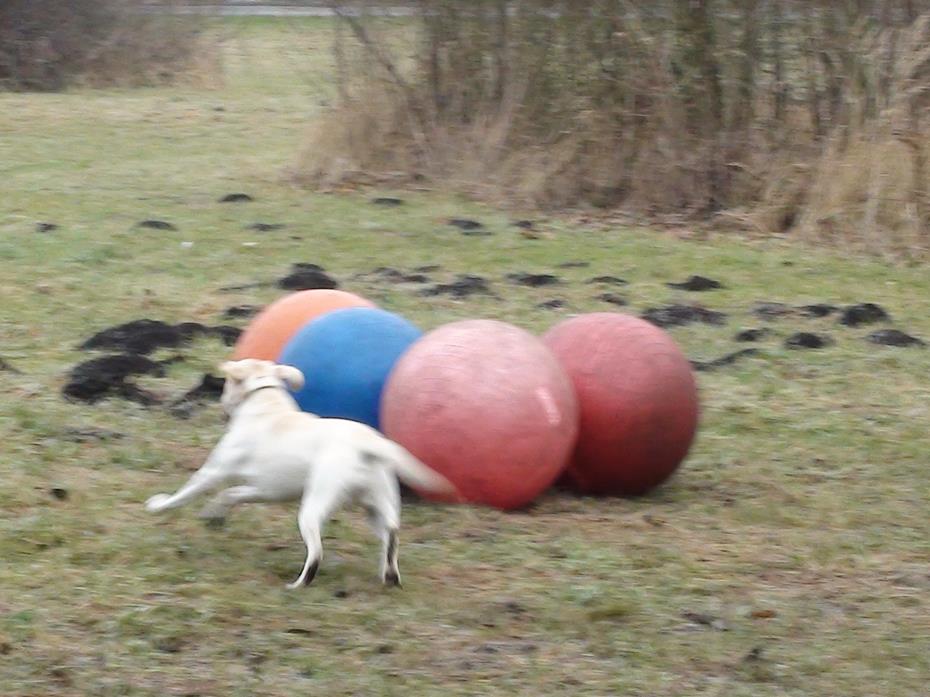 Treibball ist eine relativ neue Hundesportart, die insbesondere am Anfang für Hüte- und Treibhunde gedacht war, um sie 'artgerecht' auszulasten. Da aber nicht jedem Hundebesitzer dieser Rassen eine Schafherde zur Vergügung steht, bieten die Bälle eine sehr gute Alternative um den Hunden wieder einen 'Job' zu geben. Aber natürlich bringt diese Beschäftigung auch für jede andere Rasse sehr viel Spaß und vor allen ist ein sehr guter Gehorsam mit Distanzkontrolle erforderlich!